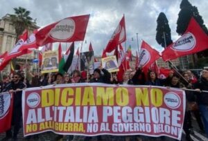 Centinaia di persone sono scese in piazza a Roma per manifestare contro il referendum costituzionale sulla giustizia, previsto per il 22 e 23 marzo, chiedendo le dimissioni del governo Giorgia Meloni e la fine dei conflitti internazionali. Durante il corteo, partito da piazza dell’Esquilino, sono stati bruciati due grandi cartelloni raffiguranti la presidente del Consiglio e il ministro della Giustizia Carlo Nordio. Il primo mostrava la premier con il ministro al guinzaglio e con la museruola, accompagnato dalla scritta: “No al vostro referendum”. Il secondo ritraeva la stretta di mano tra Meloni e il primo ministro israeliano Benjamin Netanyahu, con l’accusa diretta: “No al vostro genocidio, 75mila civili uccisi, 2 milioni di sfollati”.